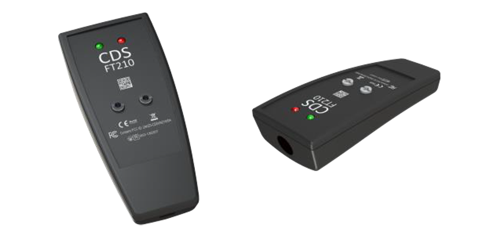 The HTN-210 can be powered by 2xAA rechargeable batteries or via a 5V DC line power. It features an LED visual indicator that provides information about line power availability, battery level as well as the network joining and communication status.